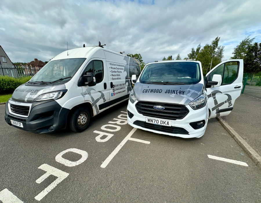 Oscar • Kris • Shortlees Primary School staff & pupils • Cutwood Joinery vans/tools & site setup